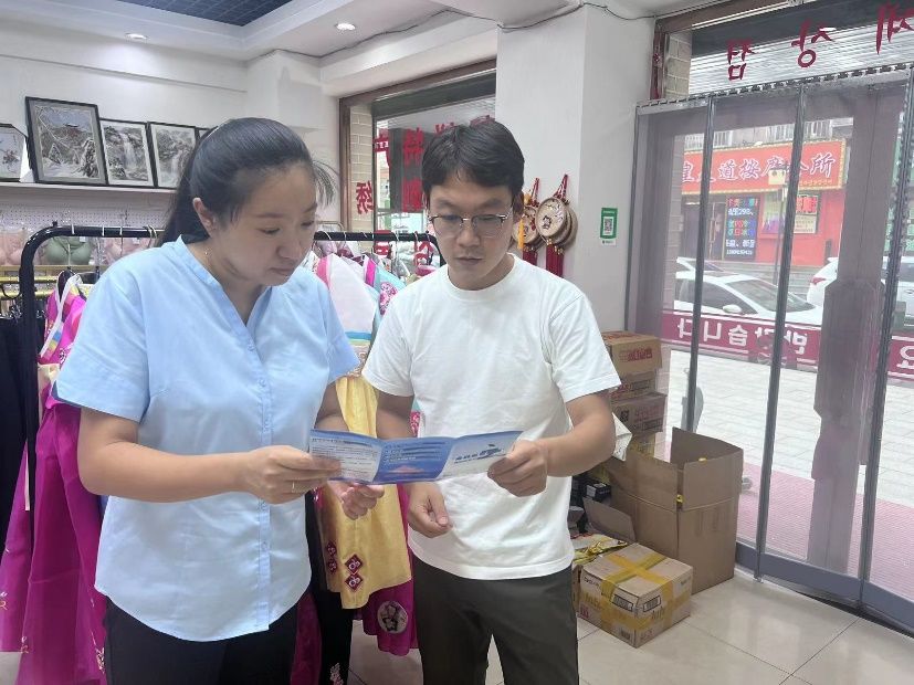 太平人壽丹東中支工作人員在中朝邊境“高麗街”向商戶宣傳金融知識(shí)