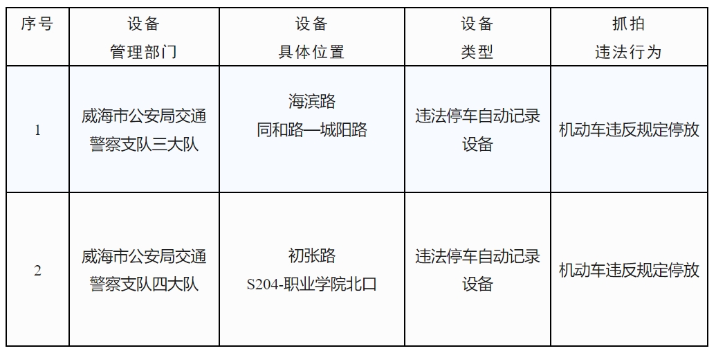 為保證道路交通安全,預防和減少交通事故的發(fā)生,根據《中華人民共和國道路交通安全法》及其實施條例等法律法規(guī)和相關技術規(guī)范的規(guī)定,依據《公安機關執(zhí)法公開規(guī)定》,現將威海市新增2處交通技術監(jiān)控設備予以公示,自6月3日起,將對有關交通違法行為進行依法管理,請廣大交通參與者自覺遵守道路交通安全法律法規(guī),共同維護良好的道路交通環(huán)境。