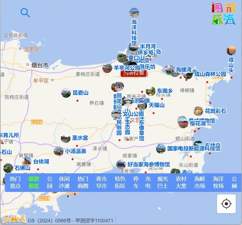 考慮到游客、市民多維游玩需求,“圖游威?!闭粕戏掌脚_還將涉及近郊游玩、出行、急救、權(quán)益維護等數(shù)據(jù)信息納入其中,分設涵蓋熱門景點、旅游景區(qū)、公園、休閑沙灘、熱門商圈、夜市早市、特色街區(qū)、停車場、充電樁、觀光巴士、農(nóng)村大集、海鮮市場、海洋牧場 、公廁、自駕驛站、森林公園、高鐵場站 、AED(自動體外除顫儀)點位、文體場館、城市書房、房車基地、傳統(tǒng)村落、消費維權(quán)服務站等20余個功能板塊,真正實現(xiàn)“一圖在手,走遍威海”。