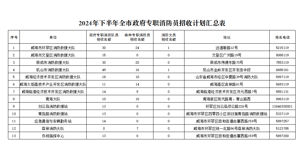 1.此次政府專職消防員招錄由威海市消防救援支隊(duì)組織。