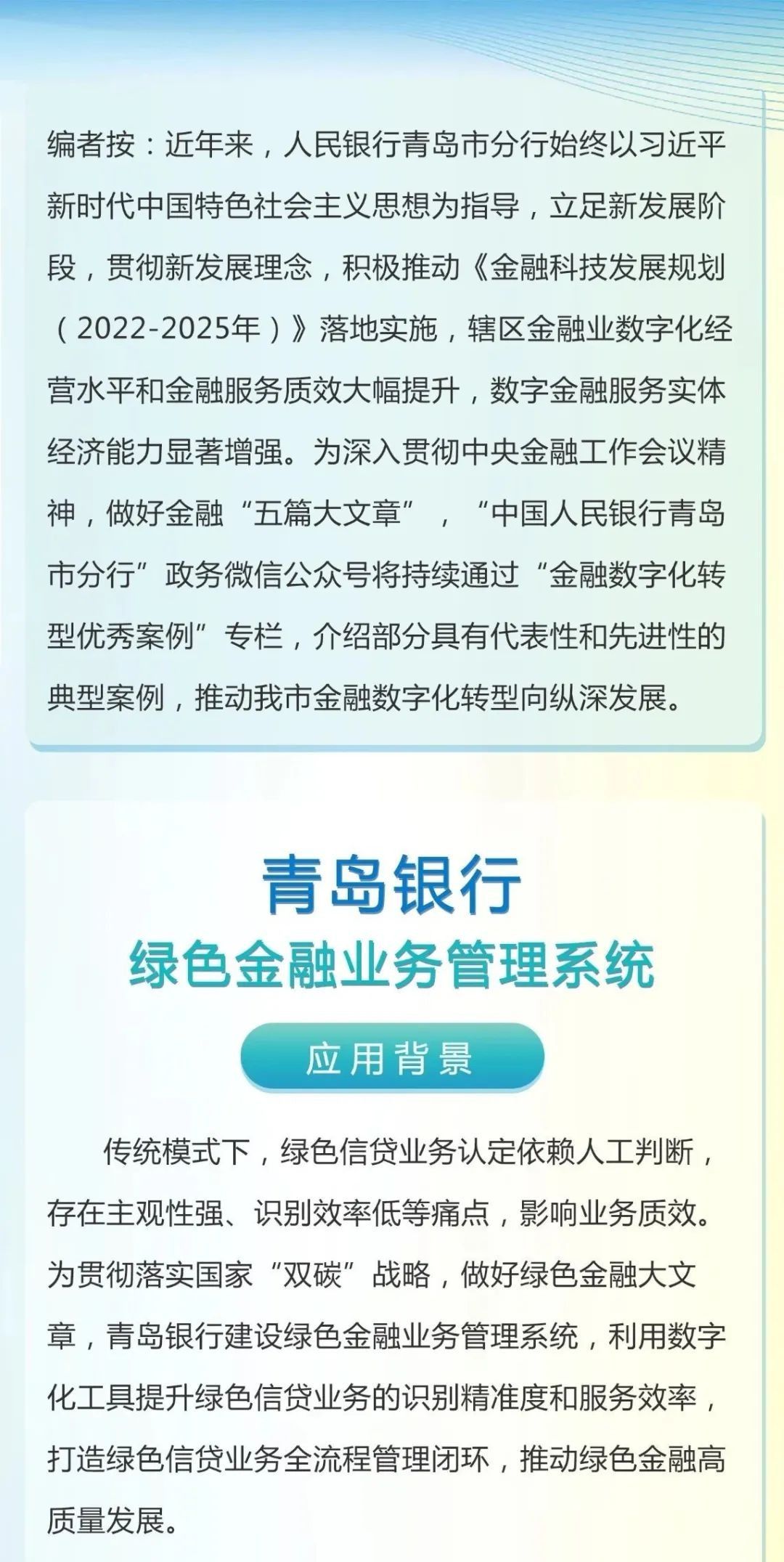 金融數(shù)字化轉(zhuǎn)型優(yōu)秀案例|青島銀行綠色金融業(yè)務(wù)管理系統(tǒng)