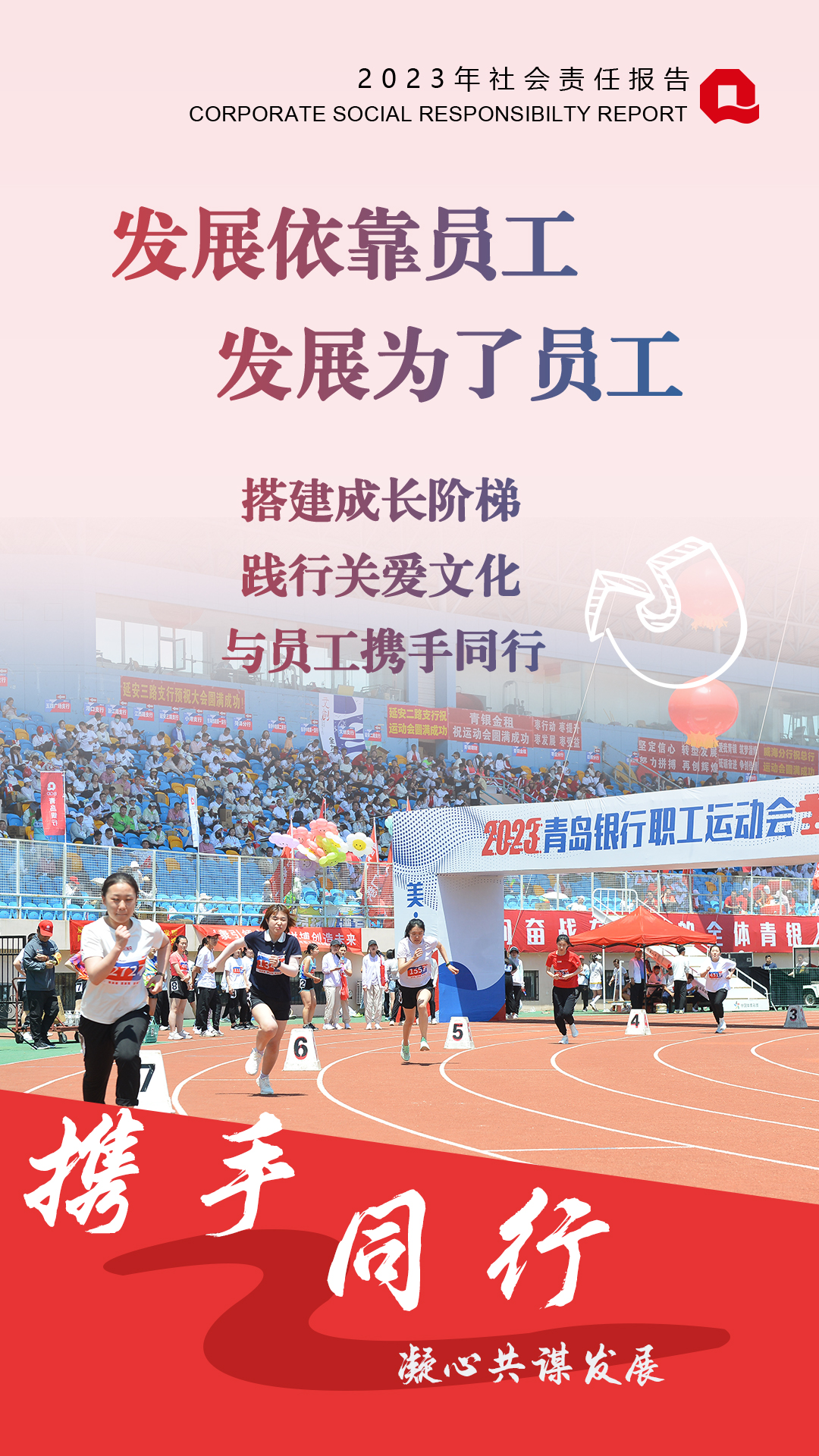 2023年,青島銀行堅持“高質(zhì)量履責”與“高質(zhì)量發(fā)展”同行,對內(nèi)堅持“發(fā)展依靠員工,發(fā)展為了員工”理念,為員工搭建成長平臺,踐行關(guān)愛文化,與員工攜手同行共成長;對外積極投身社會公益,向善而行,著力構(gòu)建具有青銀特色的慈善公益體系。