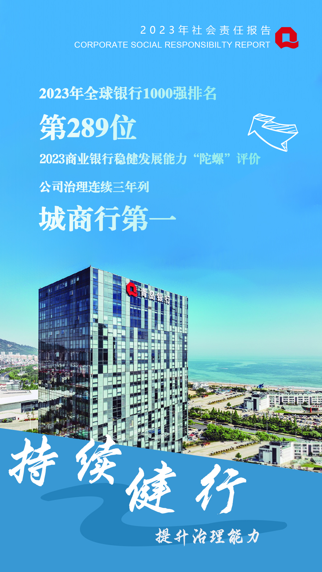 2024年3月28日,青島銀行發(fā)布2023年度社會責任報告,這是青島銀行連續(xù)第8年發(fā)布獨立的社會責任報告。2023年,青島銀行堅持黨建引領(lǐng)航向,主動將自身發(fā)展融入地方發(fā)展大局,走高質(zhì)量發(fā)展之路,年內(nèi)管理總資產(chǎn)突破8000億元,站上發(fā)展新起點。穩(wěn)健發(fā)展的同時,青島銀行積極履行地方法人銀行的經(jīng)濟責任、環(huán)境責任和社會責任,以金融助力區(qū)域經(jīng)濟高質(zhì)量發(fā)展。